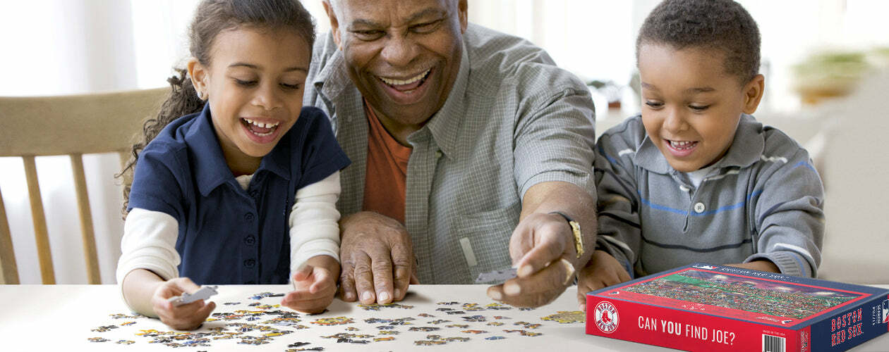 First you have to put the Boston Red Sox puzzle together. Then you have to find Joe Journeyman - the only player to play for all 30 MLB teams - and discover dozens of laugh-out-loud scenes in these hand-drawn illustrations of MLB stadiums, their fans and their landmark surroundings. The Red Sox seek and find adventure puzzle is officially licensed by Major League Baseball.