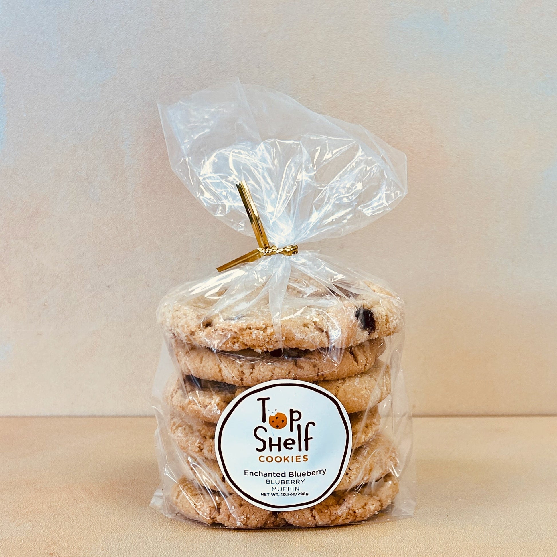 Sweet dried blueberries are folded throughout, creating bursts of fruity flavor in every bite. Each cookie is hand-scooped and rolled in sparkling sugar to capture the nostalgic “muffin top” look.