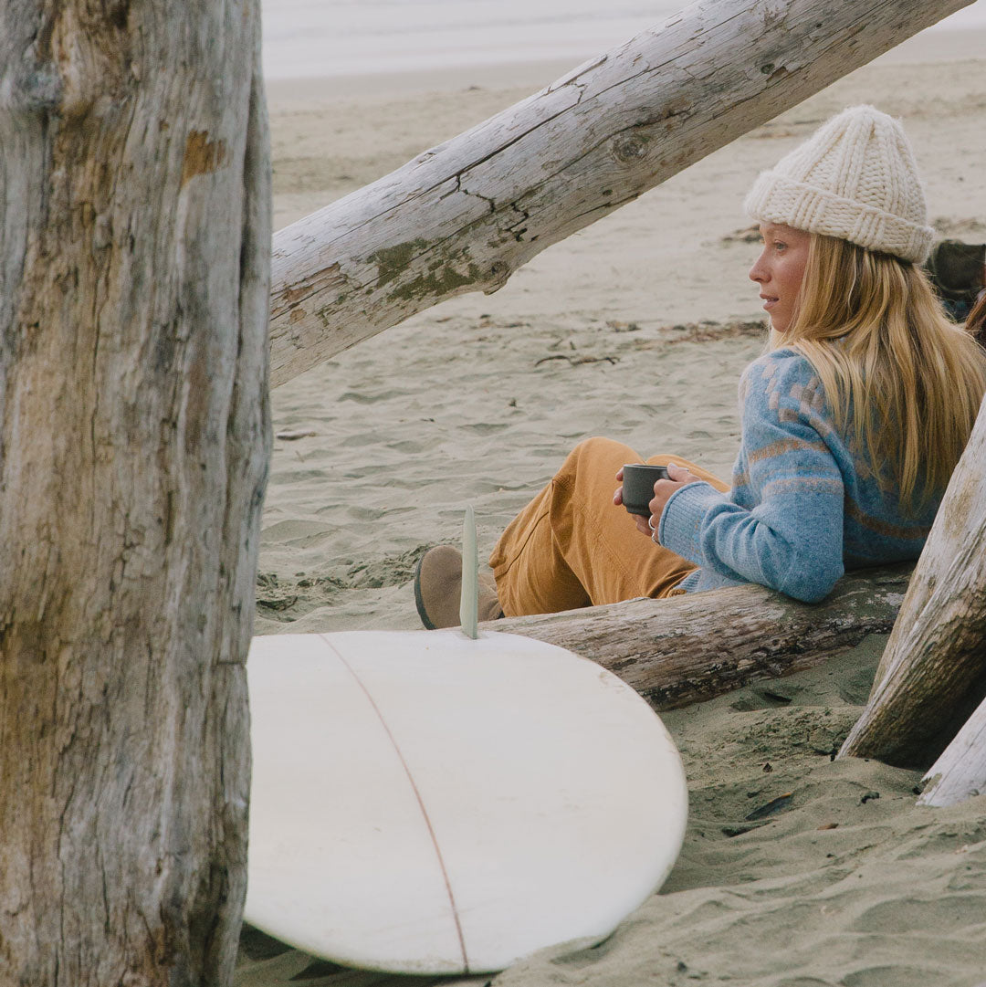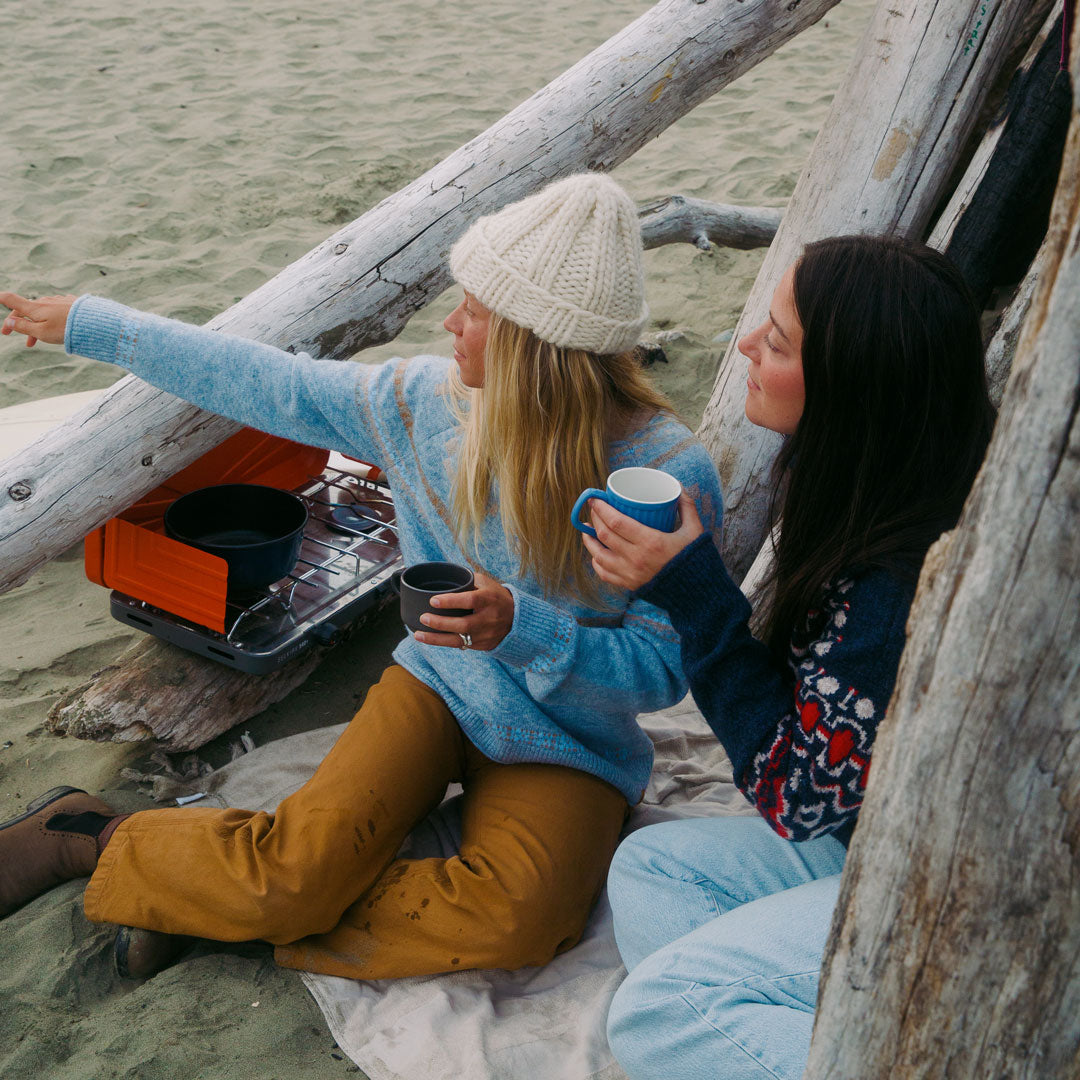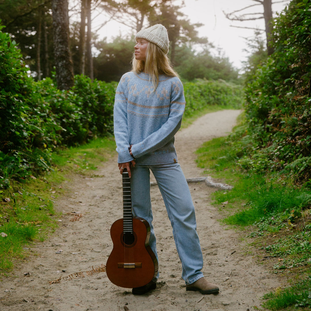 Apres is said to be a state of mind, one that this sweater may help you find. Inspired by vintage lodge-essential Fair-Isle style in a modern cut and cozy sustainable yarn knits that will keep you warm by the fire.
